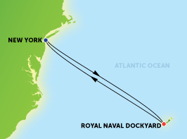 經過港口:  上船紐約(紐約);國王碼頭(百慕達;下船紐約(紐